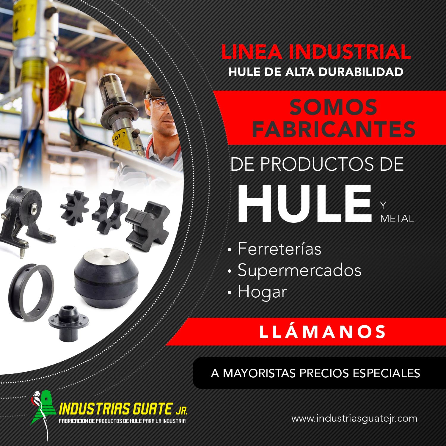Fabricamos y distribuimos a ferreterías en toda Guatemala productos de alta calidad en Hule, tales como empaques para mangueras, empaques de lavatrastos y lavamanos, sanitarios, tacos para muebles de metal de diferentes medidas.